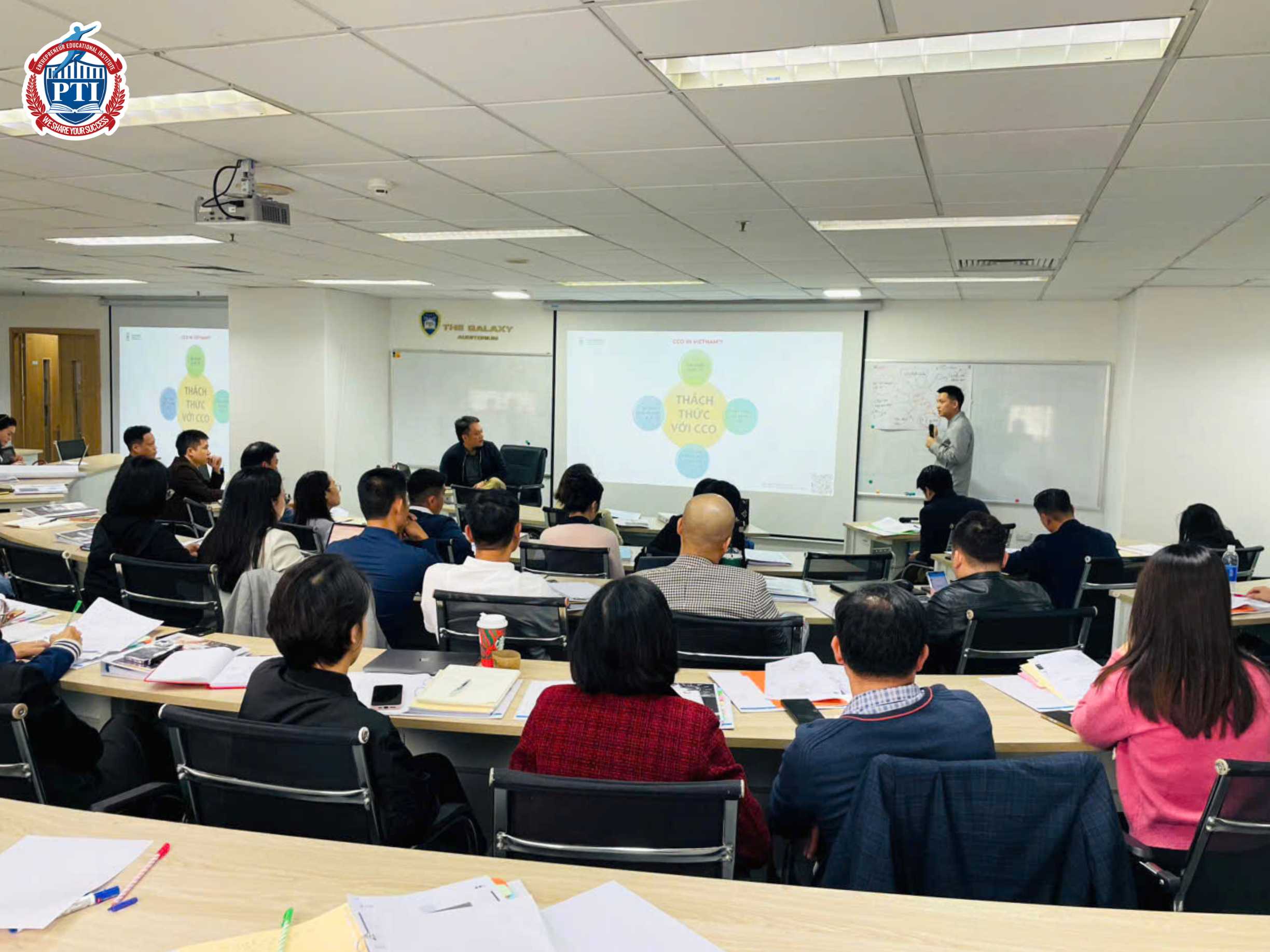 Ngày 06/12/2025, PTI đã tổ chức khai giảng chương trình “CCO – Giám đốc Kinh doanh chuyên nghiệp” khóa 44 với sĩ số 95 học viên, tại giảng đường The Galaxy, Hà Nội. Buổi học đầu tiên diễn ra trong không khí nghiêm túc và tích cực, mở đầu cho hành trình trang bị tư duy và kỹ năng cần thiết đối với vai trò giám đốc kinh doanh trong bối cảnh cạnh tranh hiện nay.